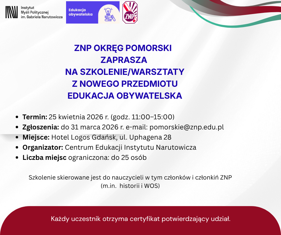 Informuję, że w dniu 25.04.2026 GODZ. 11.00-15.00 – w HOTELU LOGOS GDAŃSK odbędzie się szkolenie ZORGANIZOWANE...