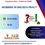 23 października 2024r. odbędzie się szkolenie online „MOBBING w zakładzie pracy – jak mu przeciwdziałać „ , które poprowadzi inspektor Okręgowej Inspekcji Pracy – ZAPRASZAMY !