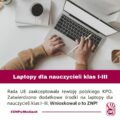 Nauczyciele klas I-III otrzymają laptopy. Wnioskował ZNP ! Zakończyła się rewizja KPO – Rada Unii Europejskiej zaakceptowała polską rewizję, zgodnie z którą 40 mln euro (ok. 172 mln zł) zostanie przeznaczonych na zakup nowych komputerów przenośnych dla nauczycieli klas I-III! O zmiany w KPO wnioskowali przedstawiciele Związku Nauczycielstwa Polskiego. W połowie kwietnia br. ZNP wystąpił do Ministerstwa Funduszy i Polityki Regionalnej o wprowadzenie zmian w programie „Laptop dla nauczyciela” w ramach rewizji KPO. Związek proponował rozszerzenie grup uprawionych o nauczycieli przedszkoli i poradni psychologiczno-pedagogicznych oraz objęcie bonami na laptop nauczycieli klas I – III szkół podstawowych i nauczycieli szkół ponadpodstawowych. Następnie Rada Ministrów przyjęła uchwałę w sprawie zmiany Krajowego Planu Odbudowy i Zwiększania Odporności, akceptując propozycję poszerzenia grupy odbiorców bonu... View Article