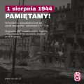 81. rocznica Powstania Warszawskiego. Jak co roku oddajemy hołd walczącym bohaterom i czcimy pamięć ofiar cywilnych. W Powstaniu Warszawskim brali też udział nauczyciele – członkowie ZNP/TON. W gmachu ZNP na warszawskim Powiślu stacjonowało III Zgrupowanie „Konrad” Armii Krajowej. Tegoroczne hasło obchodów Powstania Warszawskiego brzmi „Dziel się pamięcią, bo zniknie”. Każdego roku w rocznicy bierze udział coraz mniej osób, które przeżyły tamte dramatyczne chwile w stolicy. Według danych Muzeum Powstania Warszawskiego obecnie żyje jeszcze 292 uczestników Powstania Warszawskiego. 1 sierpnia jest świętem państwowym. Narodowy Dzień Pamięci Powstania Warszawskiego jest obchodzony od 2010 roku 1 sierpnia w rocznicę wybuchu Powstania Warszawskiego.