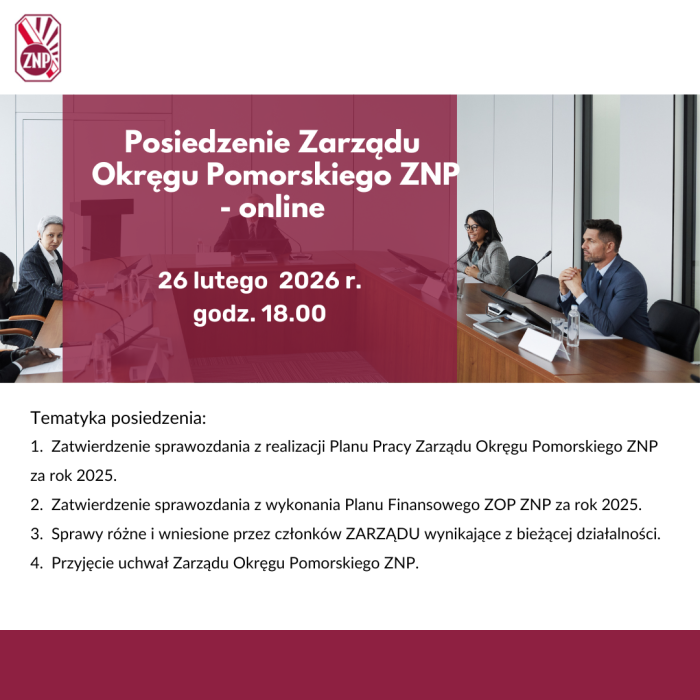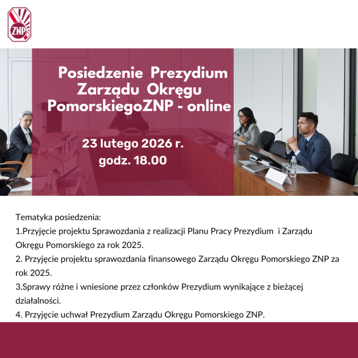 POSIEDZENIE PREZYDIUM ZARZĄDU OKRĘGU POMORSKIEGO ZNP – 12.01.2026 – ONLINE